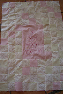 Ho terminato il top per il baby quilt dei gufetti, quelli ricamati ad aprile. Sta infatti per nascere il bimbo della mia amica, ed io mi devo dare da fare! Lei ha gusti shabby (la sua casa è uno spettacolo, suggestioni provenzali e shabby chic!), quindi ho fatto questa scelta di stoffine. Che dite, è abbstanza shabby?